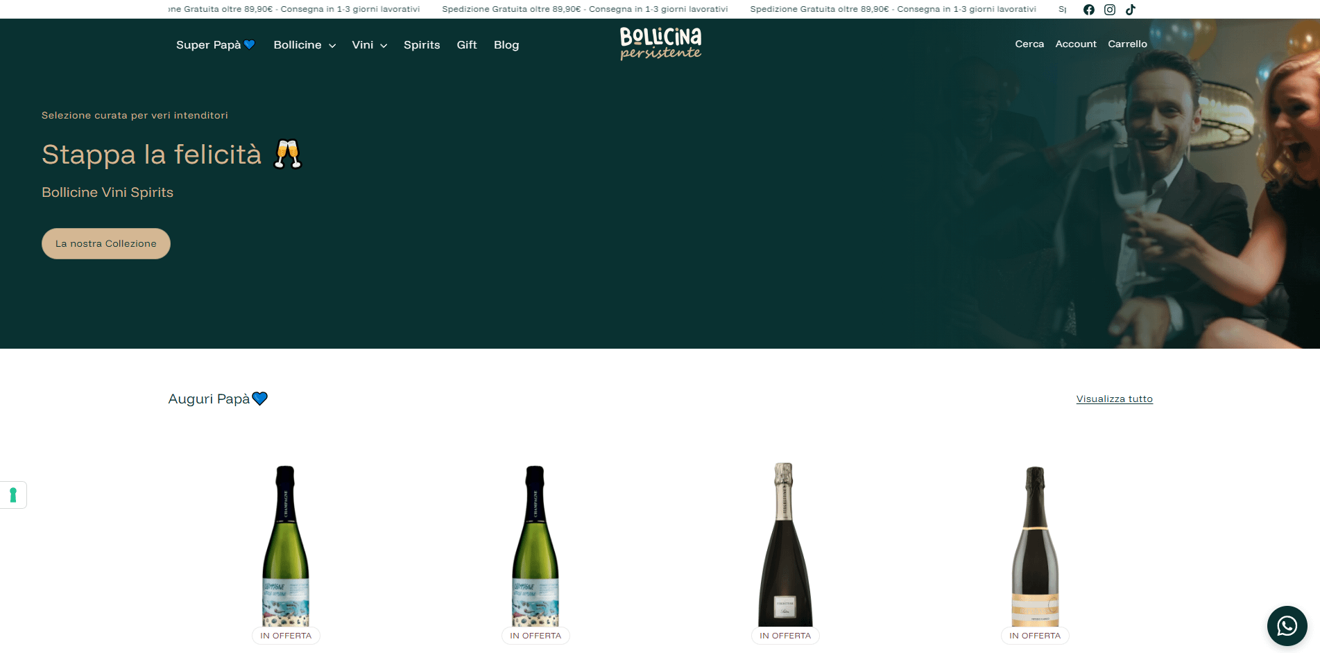 Il nuovo sito non solo offre un processo d’acquisto estremamente intuitivo , ma comunica anche la passione e la trasparenza che contraddistinguono il brand. Il risultato finale è una piattaforma pronta a scalare, capace di convertire i visitatori in clienti fidelizzati e di rendere il brindisi un gesto quotidiano e speciale allo stesso tempo.