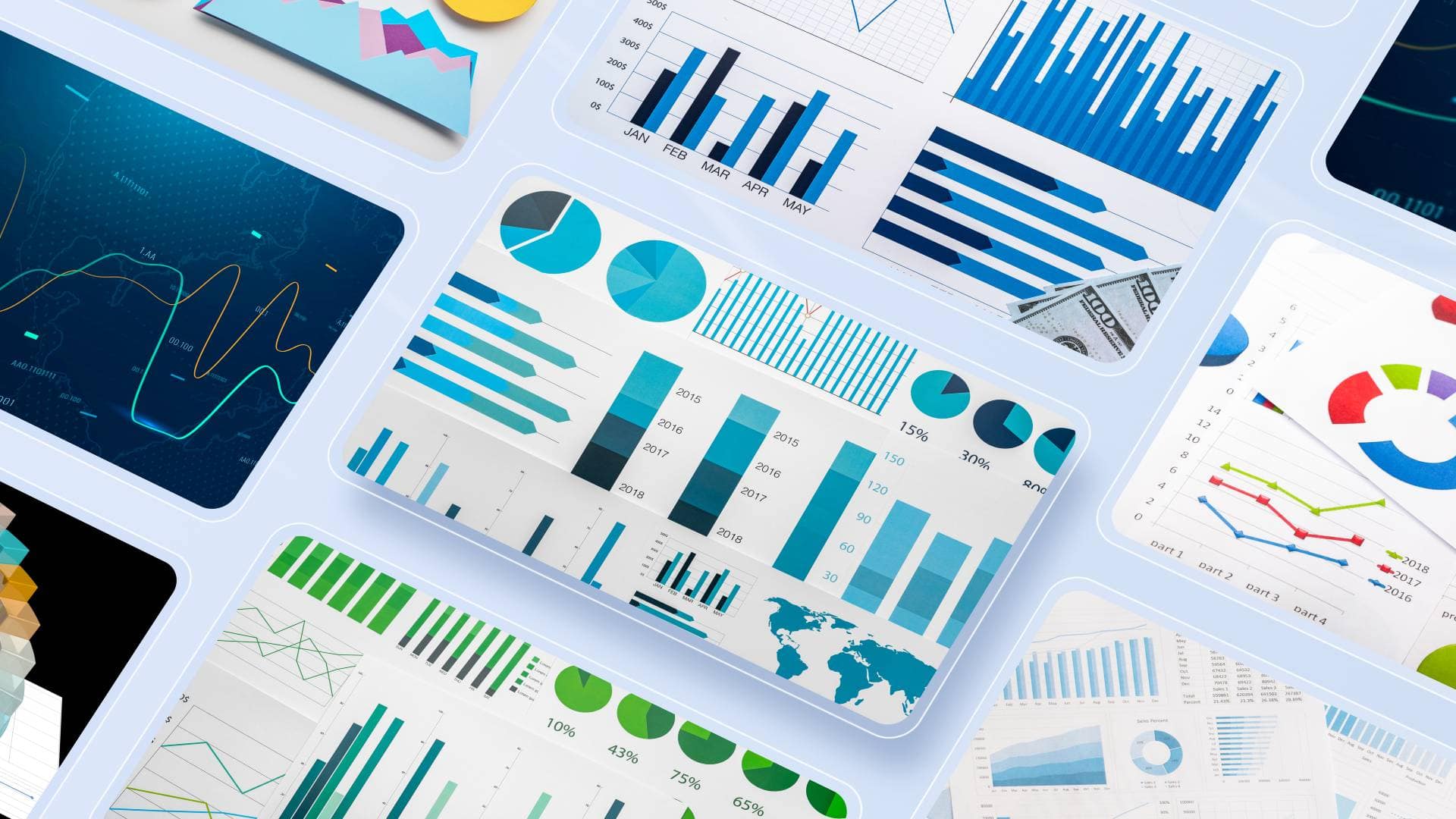 Esistono molti tipi di grafici: grafici a barre, a linee, a torta, a dispersione, a bolle, ad area, radar, a cascata, a imbuto… Ogni tipo ha uno scopo ben preciso, adatti al contesto, ma tutti si basano sul visualizzare dati specifici e comunicare informazioni chiare.